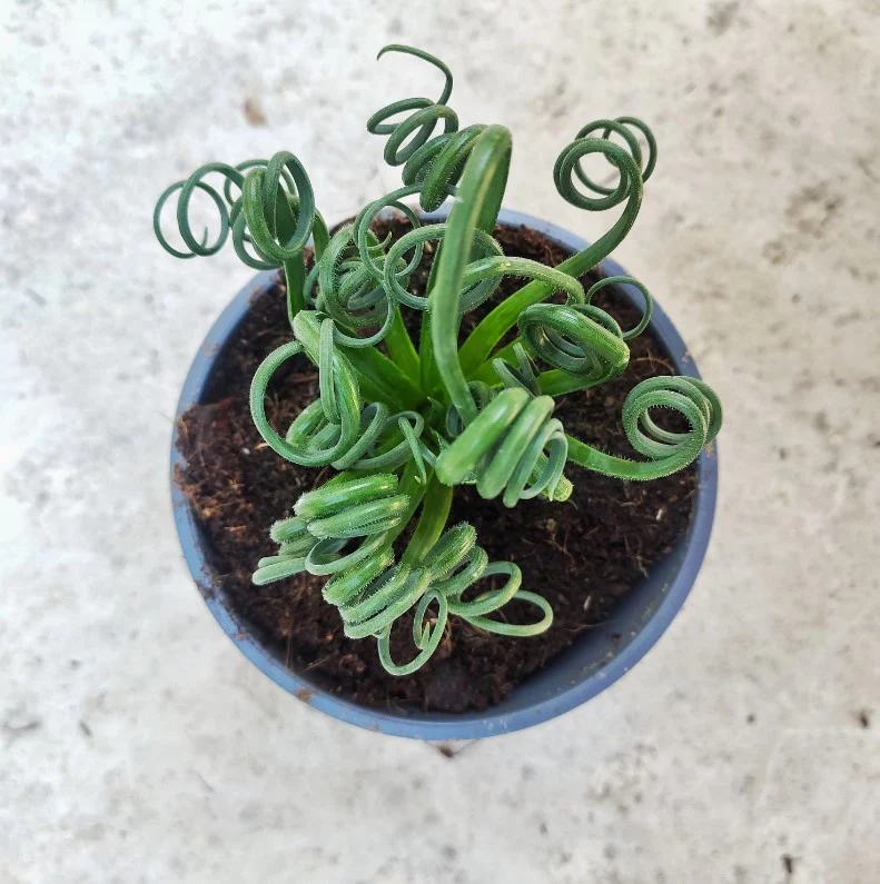Une plante succulente des plus originales avec ses feuilles spiralées et frisées, apportant une touche graphique à votre décoration.