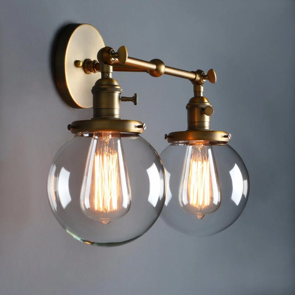 Assemblée à la main Orientable Facile à installer Douille E27 (ampoule non fournie) LIVRAISON OFFERTE Caractéristique Détail Matériau Métal couleur bronze + Verre Diamètre plaque 12 cm Douille E27 Standard Tension 110-220V Puissance Max 40W Types d’ampoules compatibles LED; CFL; Halogène; Incandescent Interrupteur Oui Orientation de l’ampoule Haut ou Bas Nombre de bras 2